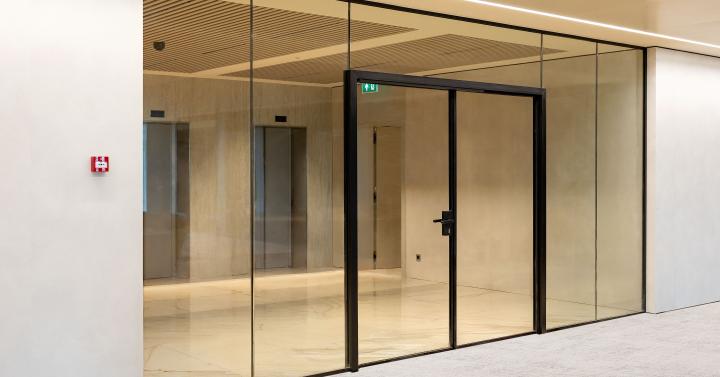 Het gebouw is uitgerust met geavanceerde glazen scheidingswanden in Pyrobel 25 Vision Line (EI60) en deuren in Pyrobel 16 (EI30), geïntegreerd binnen het LGC Concept-Line systeem.